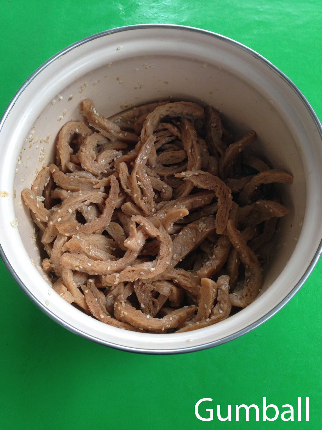 แล้วก็นำมาหั่นเป็นเส้นๆ ผสมเครื่องปรุงรสในถ้วยเล็กก่อนนะคะ อย่าใส่ลงไปในชามผสมเส้นโปรตีน
