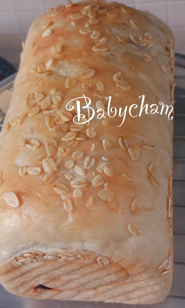 อันนี้ แม่เปปทำ แบบขนมปังแซนวิช ใส่เกล็ดข้าวโอ๊ตมากกว่าแบบแรกโดยการลดแป้งขาวลง