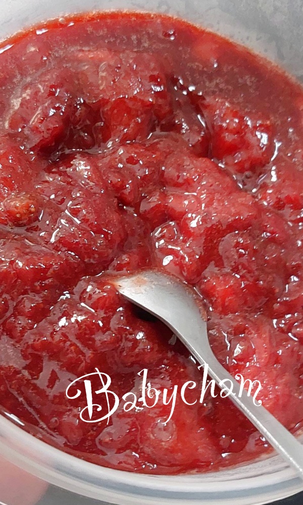 แยมสตอเบอรี่ แม่เปปทำเองค่ะ เน้นเนื้อสตอเบอรี่ ไม่ใส่น้ำตาลระดับหวานตัดขาแบบที่เขาทำขายนะ ใส่แค่หวานน้อยๆ รสเปรี้ยวอมหวาน ไม่ใส่เจลาตินช่วย หรือสารกันบูดใดๆ คุณพี่สาวกินเพลินเลยละ