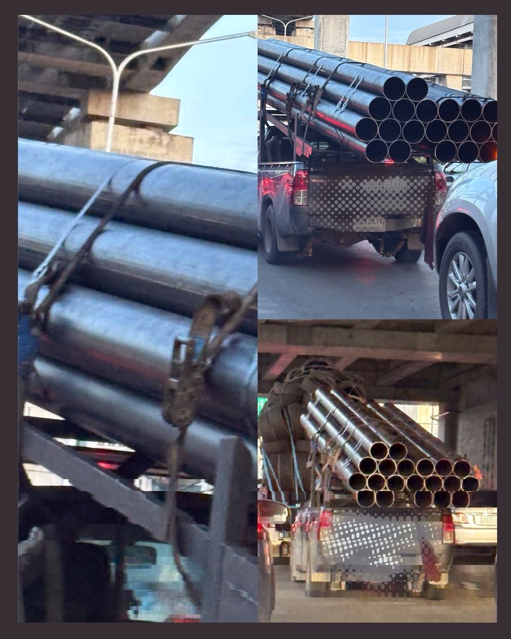 รถที่บรรทุกท่อล้นๆออกมาแบบนี้