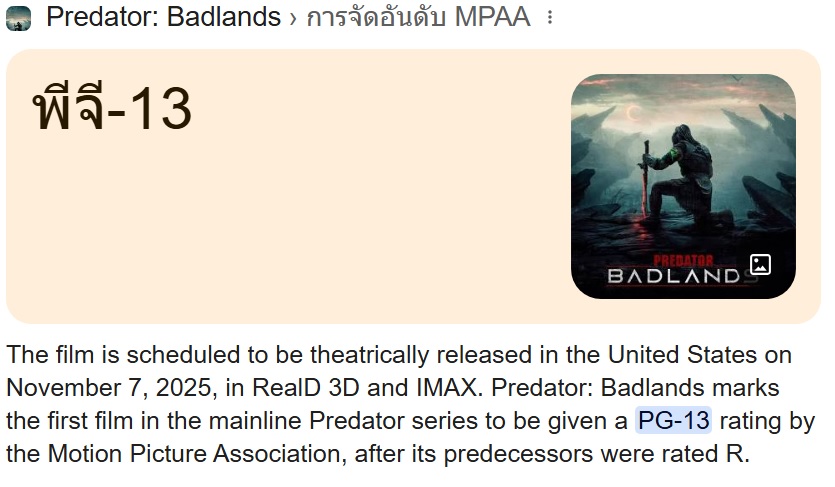 Predator: Badlands จะเป็นหนังเดี่ยวของ Predator เรื่องแรกที่ได้เรต PG-13