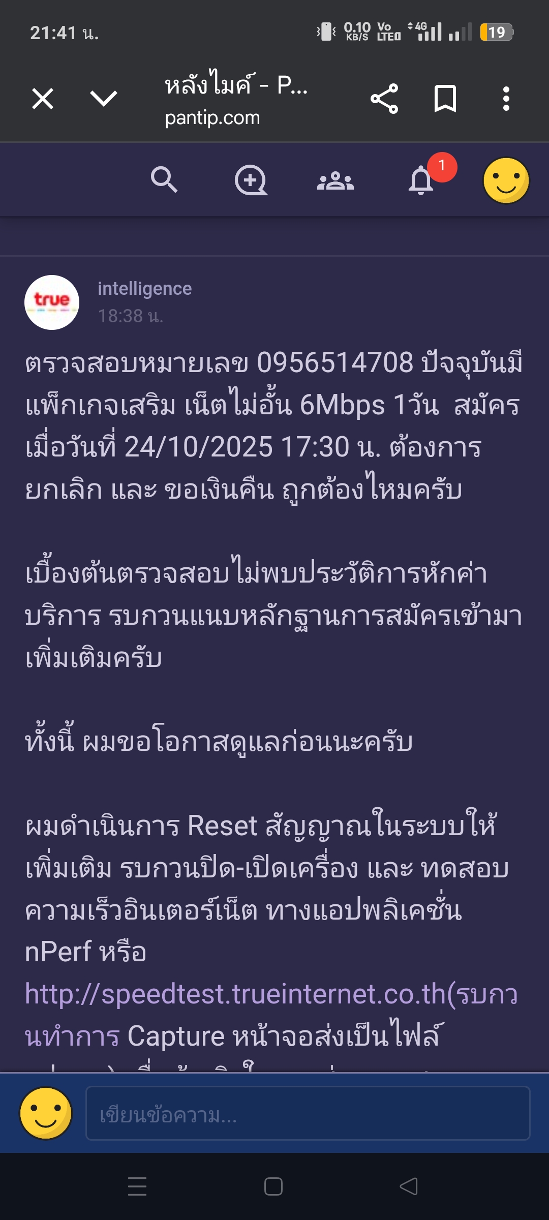 True ไม่หักเงินเพื่อต่อแพ็คเกจเน็ตอัตโนมัติ
