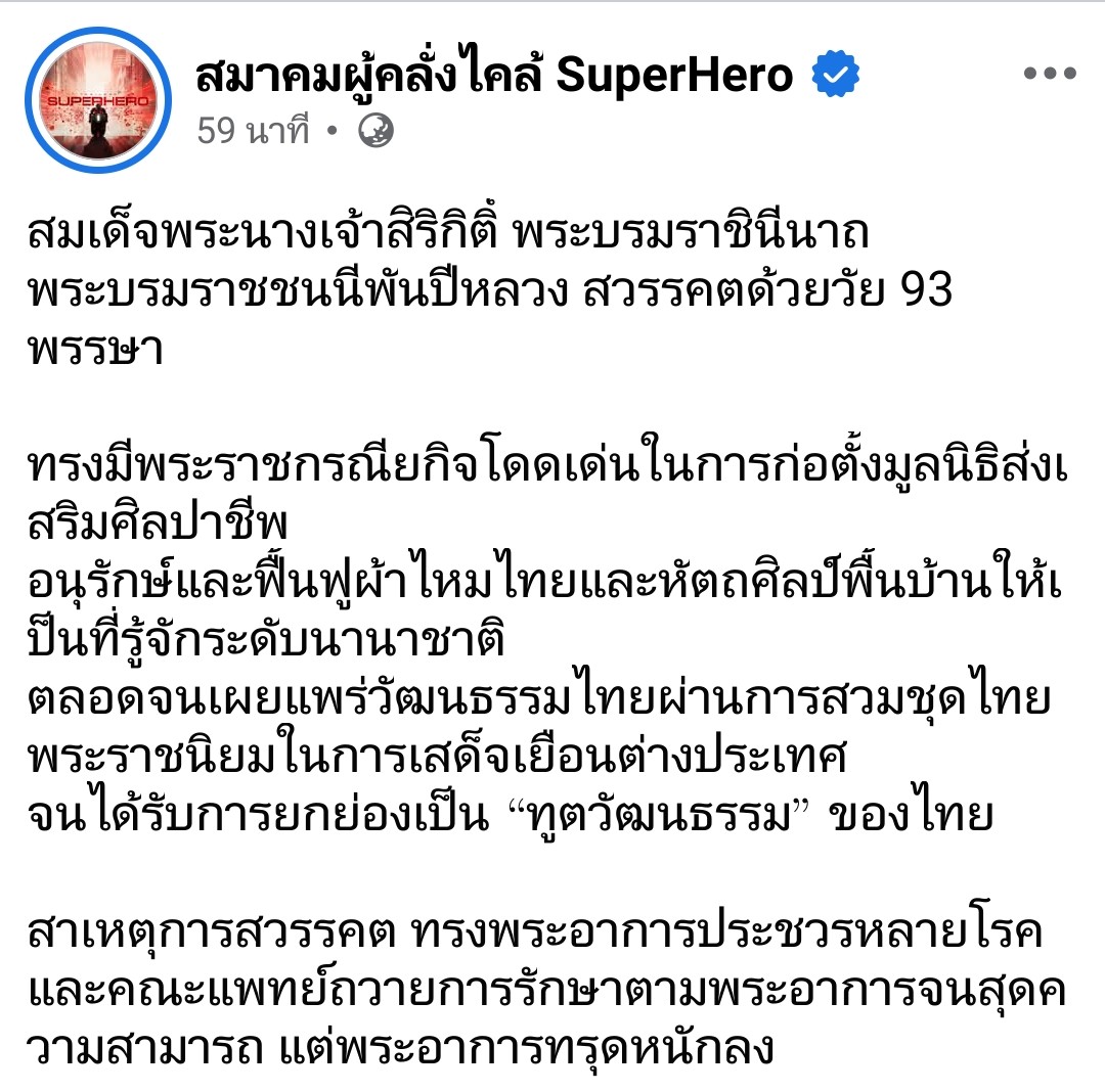 สมเด็จพระนางเจ้าสิริกิติ์ พระบรมราชินีนาถ พระบรมราชชนนีพันปีหลวง เสด็จสวรรคต ด้วยวัย 93 พรรษา