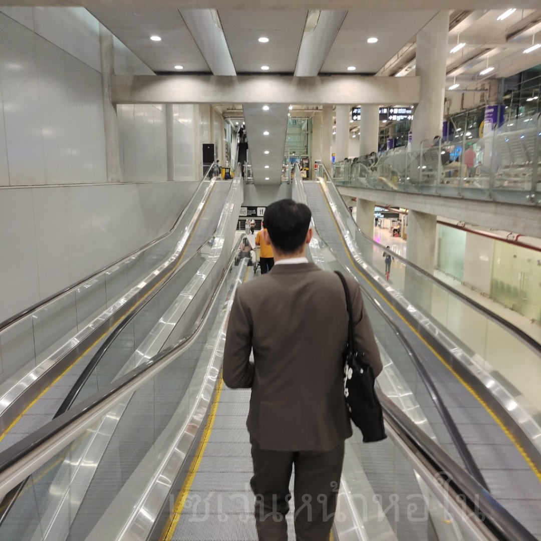 ลงบันไดเลื่อนไปยังชั้นใต้ดิน (ชั้นที่ไปขึ้นแอร์พอร์ตลิ้งค์)