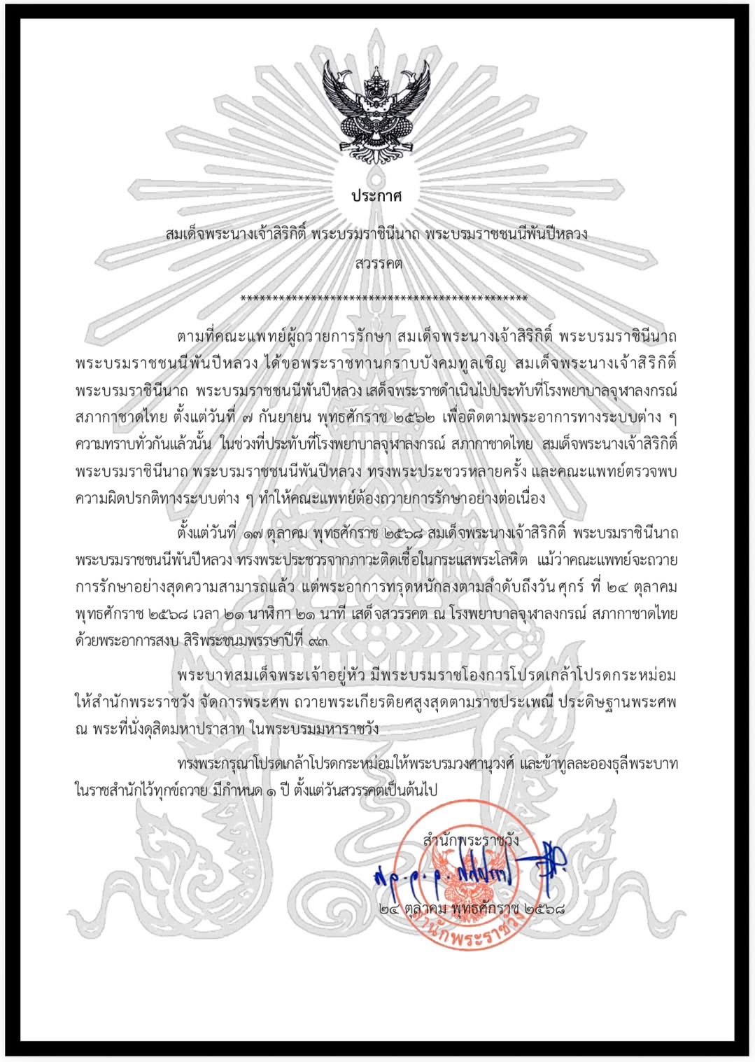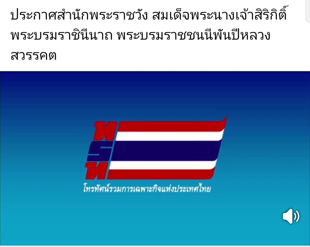 📺 โทรทัศน์รวมการเฉพาะกิจแห่งประเทศไทย ออกแถลงการณ์สำนักพระราชวัง เรื่อง สมเด็จพระพันปีหลวง สวรรคตด้วยพระอาการสงบ