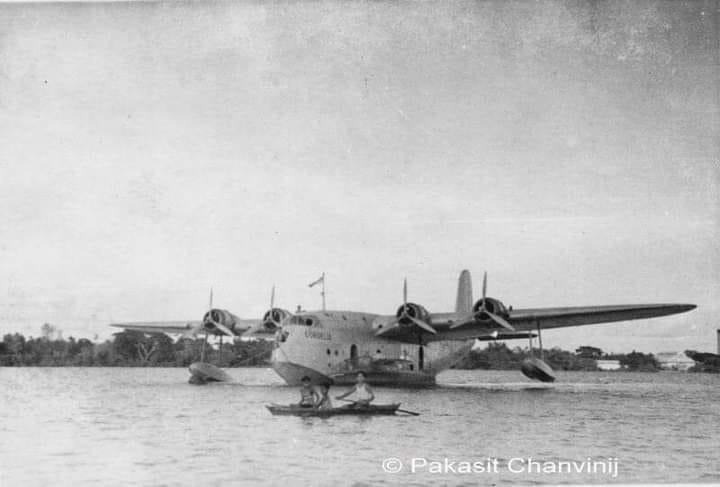 วันนั้นสายการบินจึงเชิญผู้มีเกียรติหลายท่านขึ้นไปชมบนเรือบินในเที่ยวบินปฐมฤกษ์ เรือบินลำนี้เป็น๑ในเรือบินแบบเดียวกันทั้งสิ้น๓๑ลำที่บริษัทฯใช้งานอยู่สมัยนั้น มีชื่อเฉพาะลำว่า Cordelia ตีทะเบียน G-AEUD Cordelia สร้างโดยบริษัท Shorts ประเทศอังกฤษ ออกบินครั้งแรกเมื่อวันที่ ๘ ตุลาคม ปี พ.ศ. ๒๔๘๐ เพื่อใช้ในการบินพาณิชย์กับบริษัทฯ แต่ถูกใช้ในกิจการทางทหารในช่วงระหว่าง กรกฏาคม พ.ศ. ๒๔๘๓ - กันยายน พ.ศ.๒๔๘๔ ถูกปลดระวางเมื่อ ๕ กุมภาพันธ์ พ.ศ. ๒๔๙๐ และถูกทำลายขายเป็นเศษซากที่เมือง Hyth เมื่อ ๖ มีนาคม ในปีเดียวกัน ภาพนี้อาจจะเป็นภาพสนามบินน้ำภาพเดียวของประเทศไทย มีผู้มาขอนำไปขยายเป็นขนาดใหญ่ตั้งแสดงอยู่ที่โรงแรม บางกอกเพนนินซูลา หลังจากออกตระเวนค้นหามาแล้วทั่วโลก