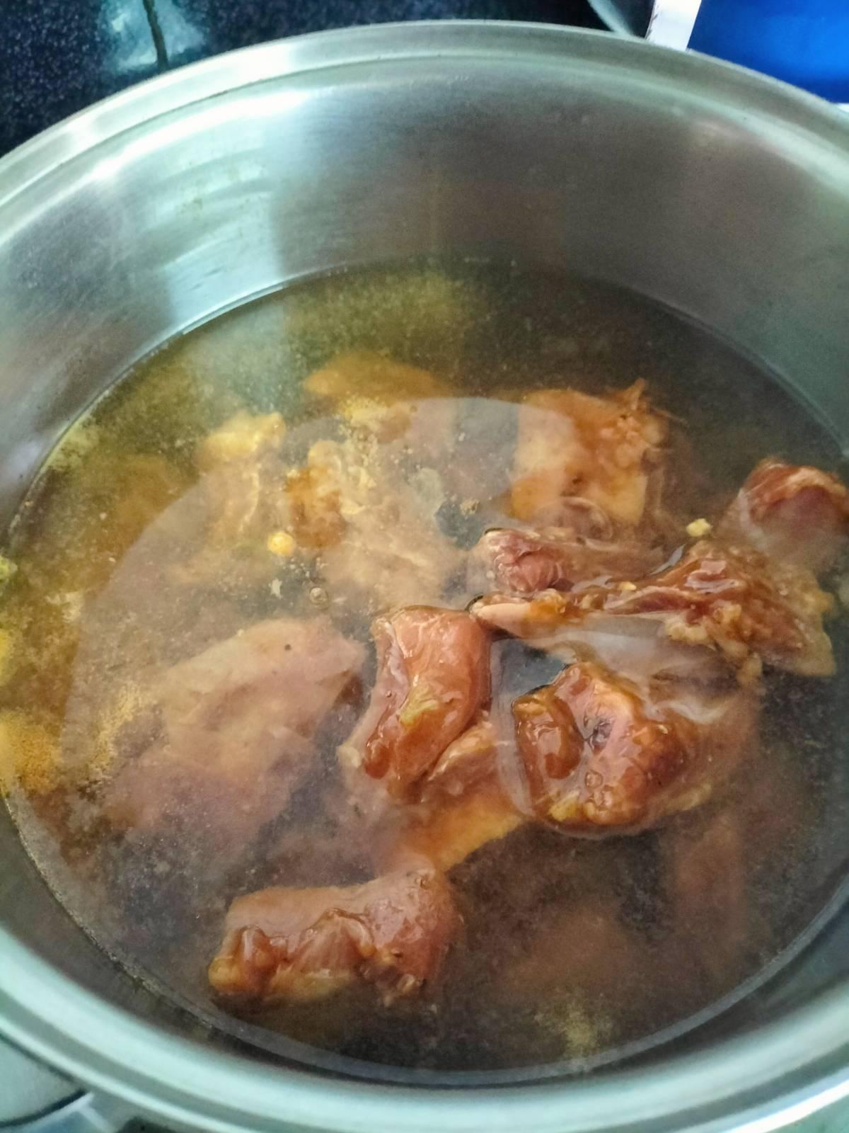 2. ตั้งหม้อ ใส่ซี่โครงหมูลงไป เติมน้ำให้ท่วม เคี่ยวด้วยไฟกลางจนเดือด แล้วหรี่ไฟอ่อนสุด ค่อยๆเคี่ยวต่อไปเรื่อย ๆ ประมาณ 40-45 นาที หรือจนเนื้อนุ่ม ระหว่างนี้ก็คอยช้อนฟองออกด้วยนะคะ