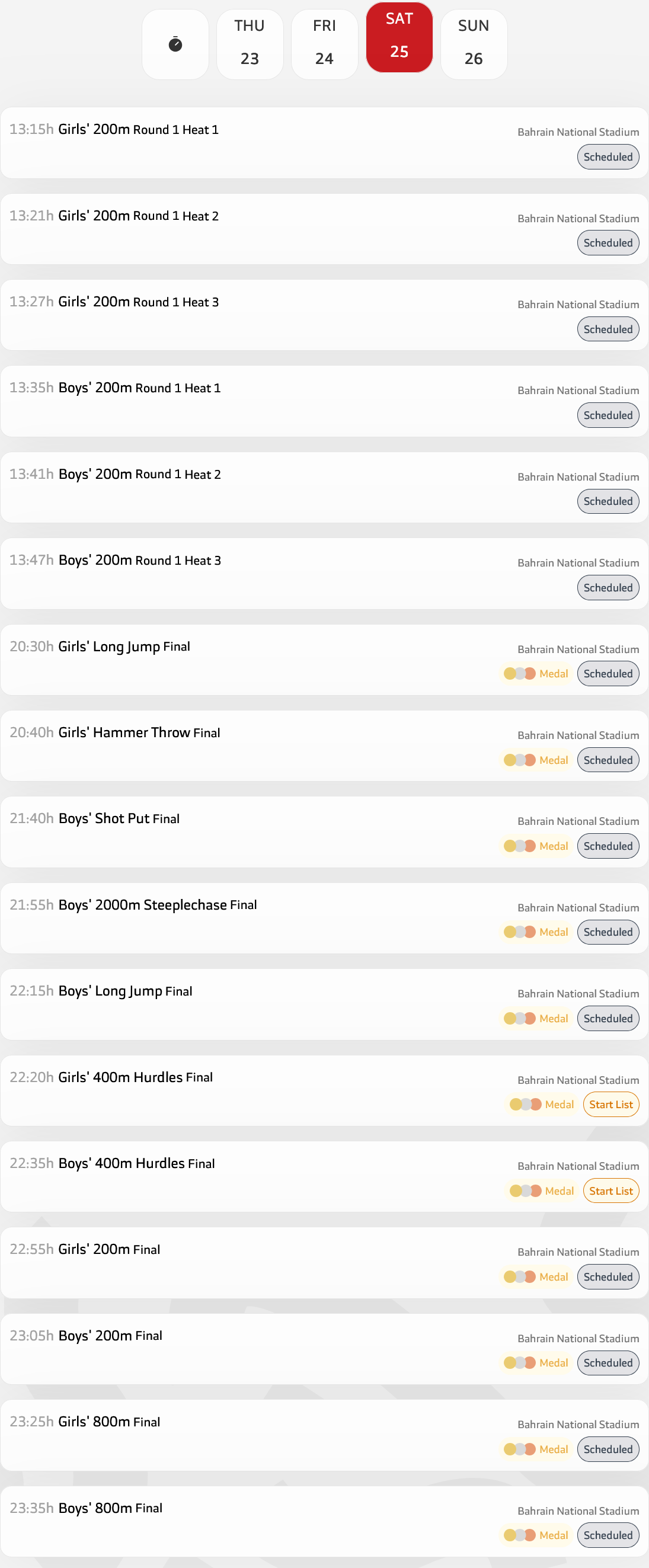 กรีฑา รายการเอเชียนยูธเกมส์ 2025 วันที่สาม (25 ตุลาคม 2025)