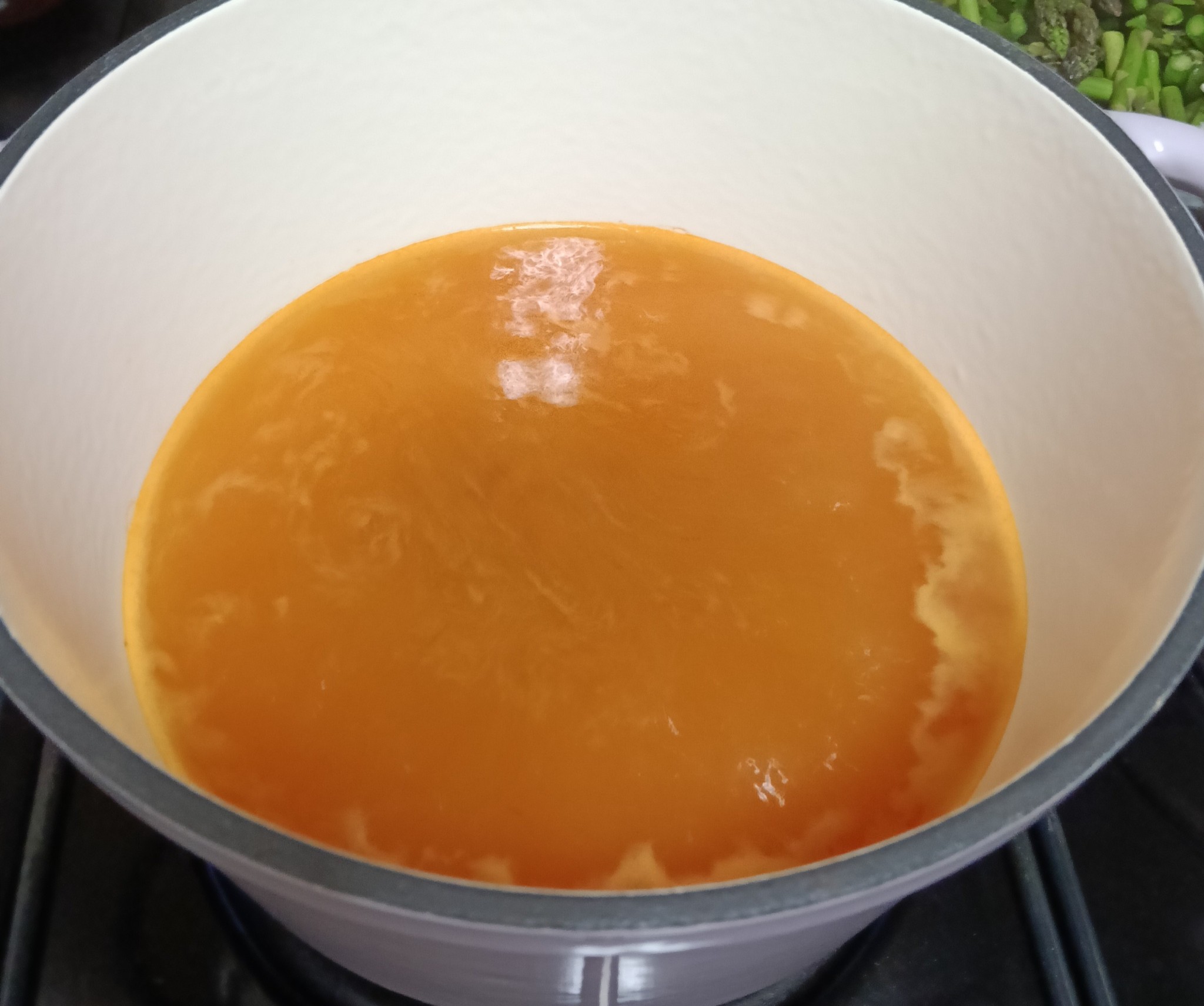 ตั้งหม้อใส่น้ำ พอน้ำเดือดก็ใส่พริกแกงส้มลงไปคนให้ละลาย