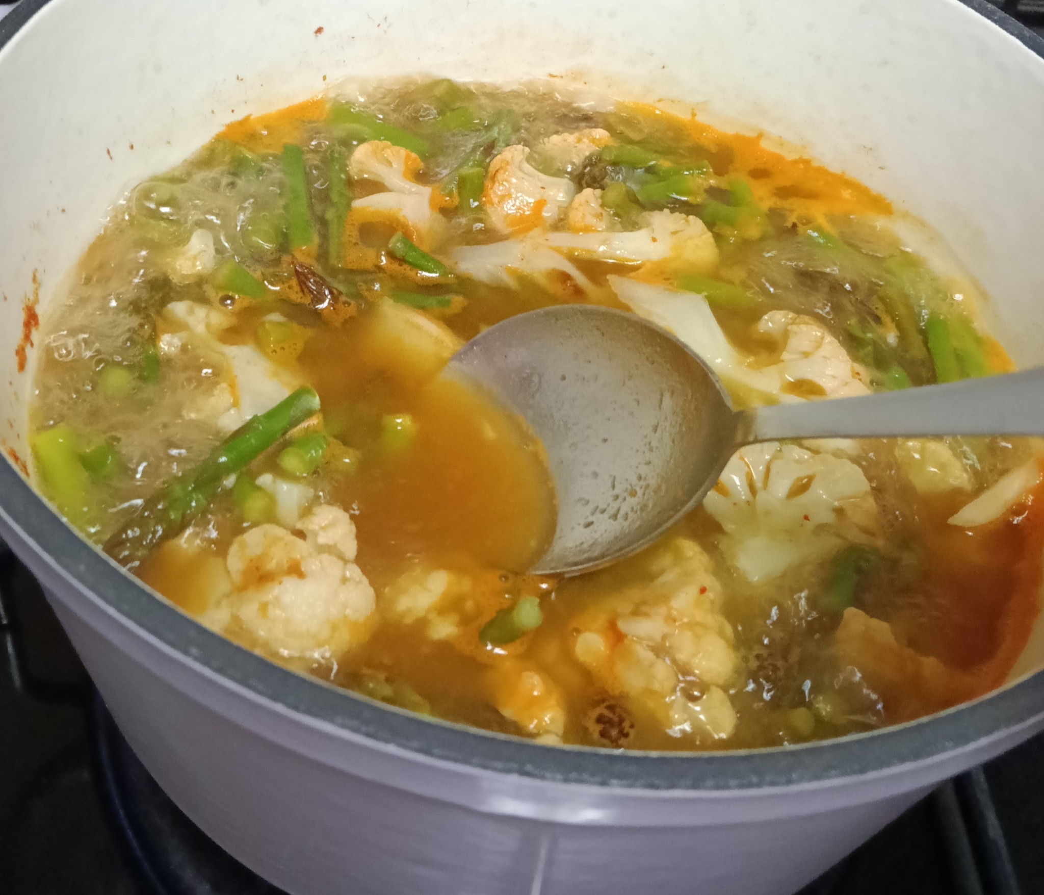 เมนูวันหยุดวันนี้มี แกงส้มสองใจ ใส่สองรัก เอ๊ย! สองผักและสองทะเล #อาหารไทยในต่างแดน 🍛🍤🐚🌶️🌶️