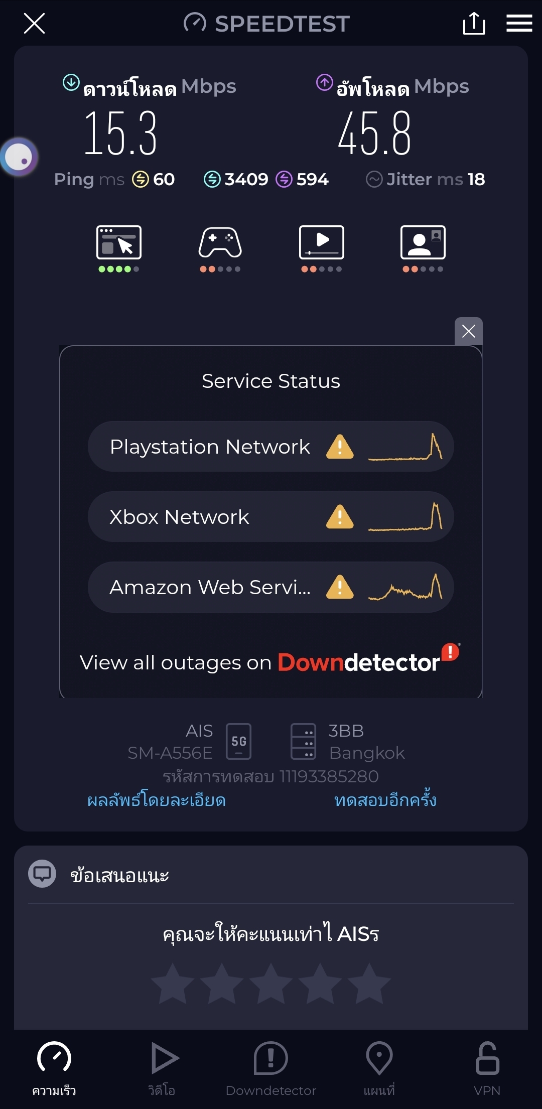 แพ็คเกจ 15 เมกของ AIS ความเร็วความเร็วคงที่ 15 MB เหลือ 700 k เป็นไปได้ด้วยหรอเน็ตห่วยมากไม่เคยแก้สักที