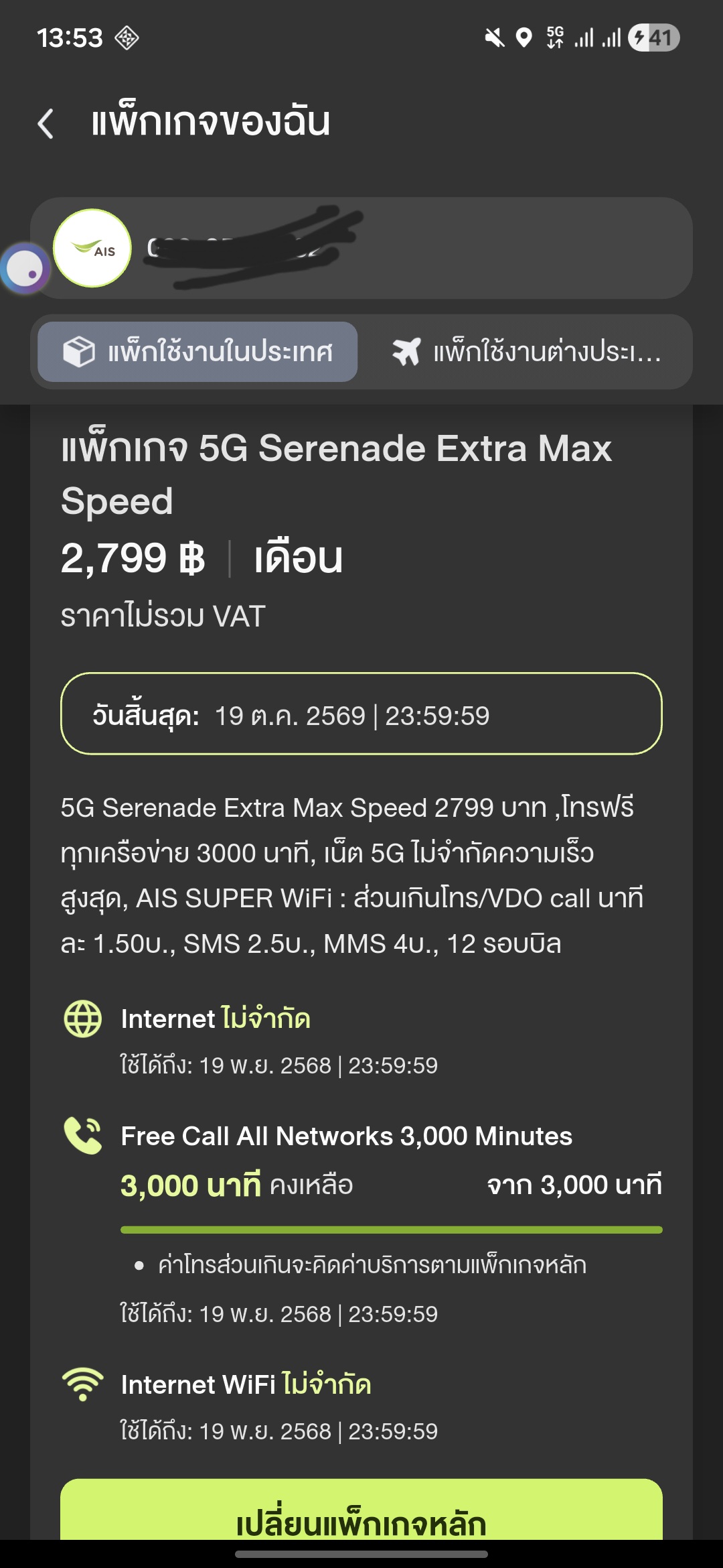 ลูกค้าเดิม AIS แต่อยากได้แพ็คเกจ 5G Max Speed ราคาโปรโมชั่น