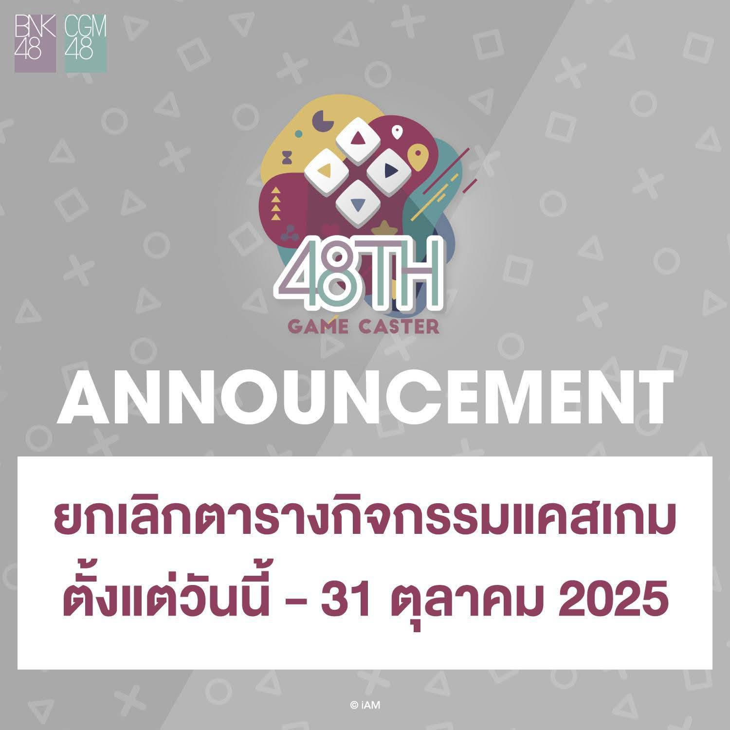 ยกเลิกตารางกิจกรรมแคสเกม ตั้งแต่วันนี้ - 31 ตุลาคม 2025