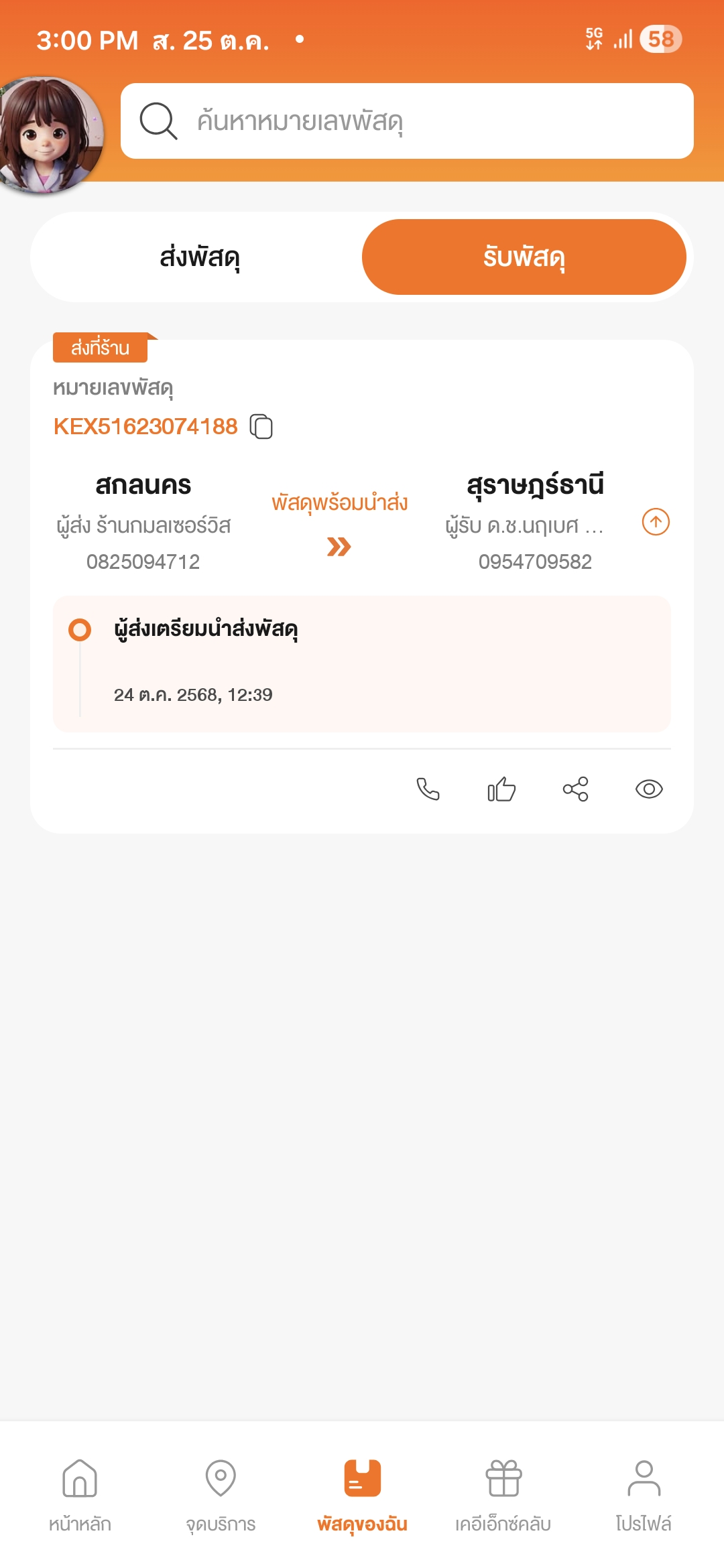 KEX ร้านคอมที่สกล ส่งเมื่อวาน ววันนี้ไม่ตัดรอบ ? เลขพัสดุ KEX51623074188