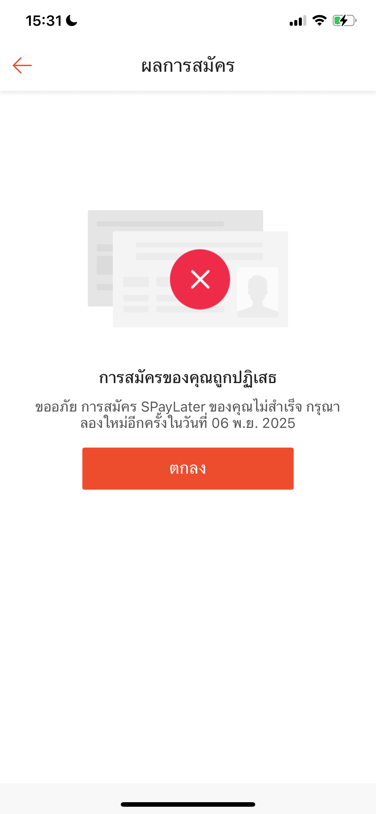 ถูกปฎิเสธ SpayLater ผ่อนสินค้าทางช็อปปี้