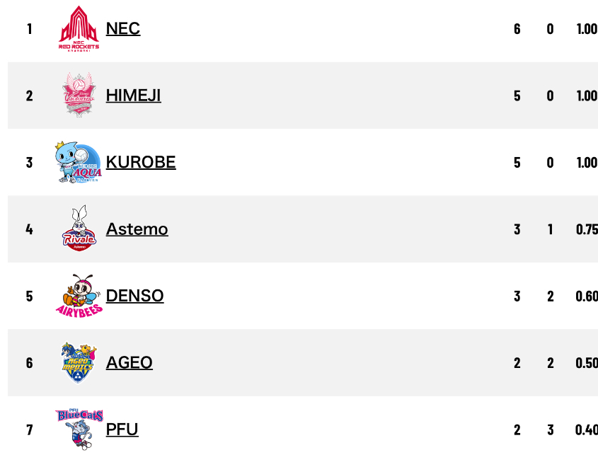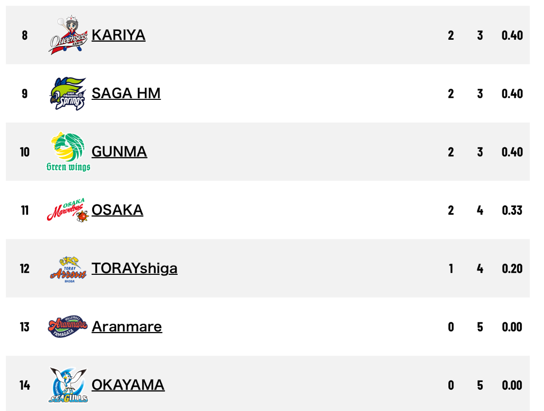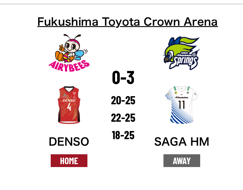1.Denso Airybees 0-3 SAGA Hisamitsu Springs (20-25 22-25 18-25) (60-75)