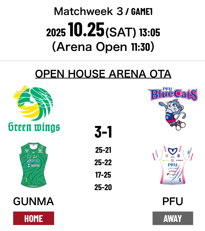 2.Gunma Bank Green Wings 3-1 PFU Blue Cats (25-21 25-22 17-25 25-20) (92-88)