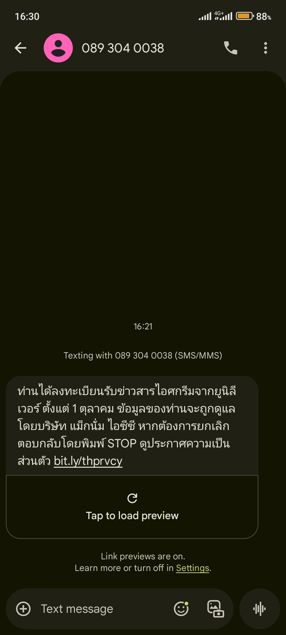 คือปกติก็จะมีข้อความพวกนี้ส่งมาในกล่องข้อความเราอยู่แล้ว ซึ่งเราก็ปัดปกติ แต่วันนี้เราสแกนหน้าพอดีแบบไม่ทันรู้ตัว เลยเผลอไปกดตรงแจ้งเตือนเป็น ข้อความจากมิจพร้อมลิ้ง ประมาณว่า ถอนได้ 888 บาทให้สมัครสมา