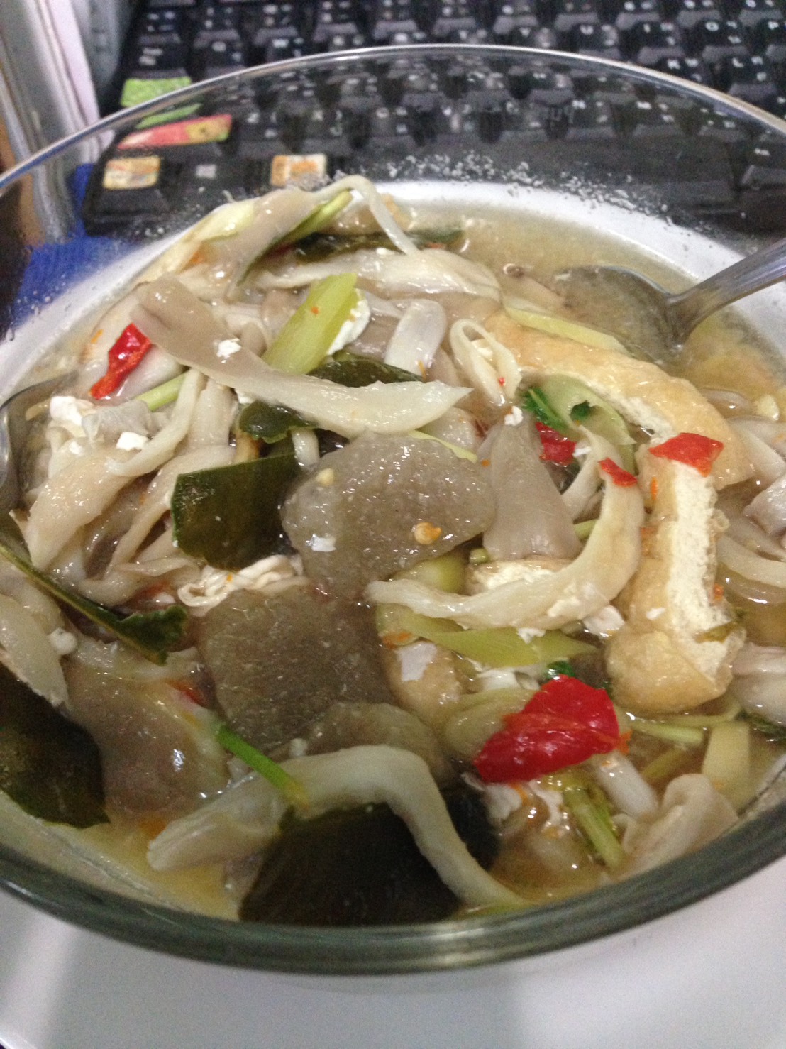 เช้านี้อากาศเริ่มเย็นเลยทำต้มยำกินค่ะ ใส่ฟองเต้าหู้ เห็ดยอซดน้ำร้อนๆ