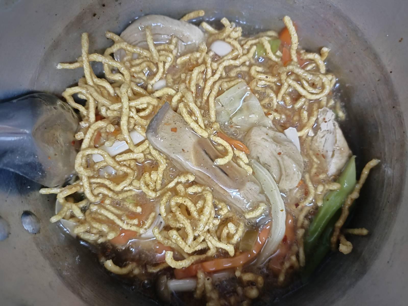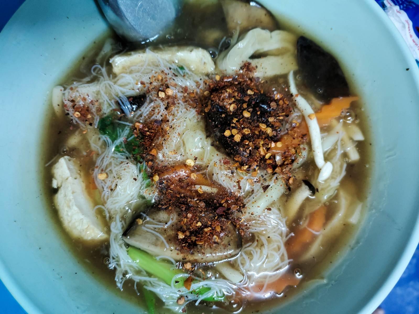 นอกจากเส้น จะประกอบด้วยหมี่กึง เต้าหู้ เห็ดฮามาจิขาว เห็ดหอม ผักคะน้าและแครอทครับ รสชาติเค็มหวานกำลังดี อร่อยมากจริงครับ