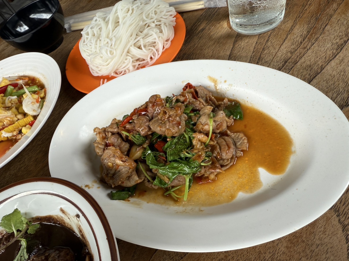 อีกเมนูที่สั่งมาเป็นกระเพราเนื้อน่องลาย จานนี้ เนื้อเหนียวไปนิด และกระเพราไม่ค่อยเข้มข้นเท่าไร