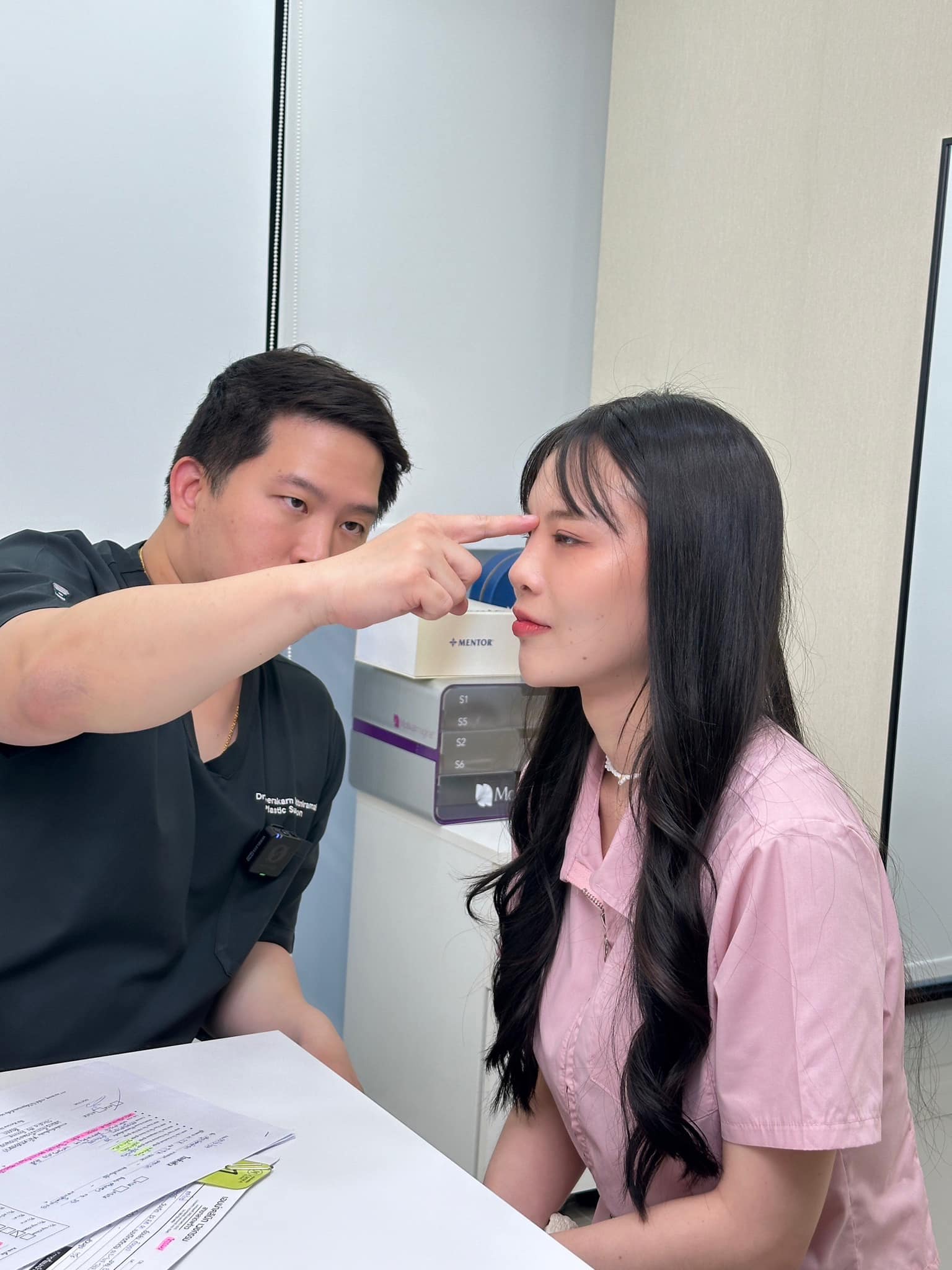 ก่อนแก้จมูก คือเรามีปัญหาเรื่องจมูกเอียงจนดันกระดูกอ่อนโผล่มาข้าง ๆ รูจมูก เกือบจมูกทะลุ จนคนทักเยอะมาก ๆ เลยตัดสินใจมาเสริมจมูกอีกครั้งกับคุณหมอวี เป็นการปรับโครงสร้างจมูกแบบเสริมจมูกโอเพ่นค่ะ คุณหมอก็แนะนำเพราะว่าเราเป็นเคสแก้จะได้ช่วยลดความเสี่ยงจมูกทะลุ ที่อาจตามมาได้ค่ะ คุณหมอก็น่ารัก ใจดีสุด ๆ แถมให้คำปรึกษาและให้คำแนะนำเราดีมาก ๆ
