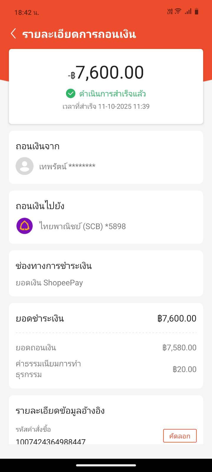 ถอนเงินจาก shopeepay แล้วไม่เข้าบัญชีธนาคาร
