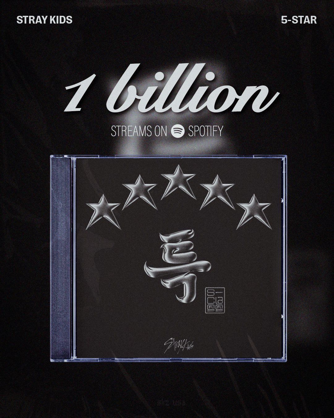 🔥 ตอนนี้อัลบั้ม “5-STAR” ของ Stray Kids มียอดสตรีมบน Spotify ทะลุ 1,000 ล้านครั้งแล้ว นี่เป็นอัลบั้มที่ 4 ของพวกเขาที่ที่ทำได้สำเร็จ!