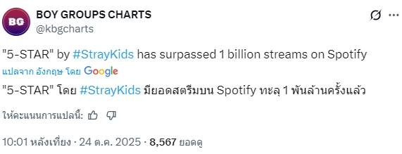 🔥 Stray Kids “5-STAR” มียอดสตรีมบน Spotify ทะลุ 1,000,000,000 (1 พันล้าน)แล้ว เป็นอัลบั้มที่ 4 ที่มียอดสตรีมถึงขนาดนี้