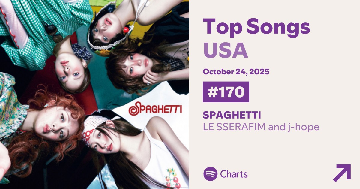 LE SSERAFIM <SPAGHETTI (Feat. j-hope)> เดบิวท์ในอันดับที่ #22 บนชาร์ต Spotify [Global] Daily + #170 in Spotify [USA].