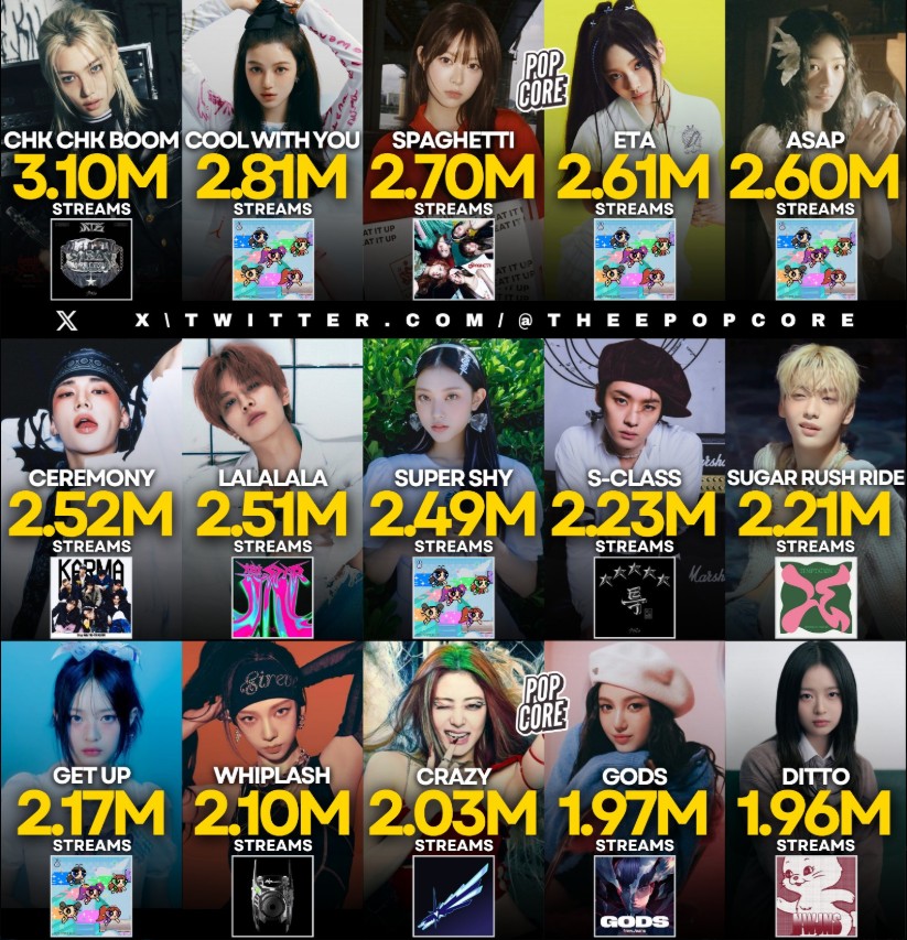 15 อันดับ เพลงที่เปิดตัวบน Global Spotify Chart ด้วยยอดสตรีมสูงที่สุดตลอดกาลของศิลปิน k-pop รุ่นที่4 โดย pop core