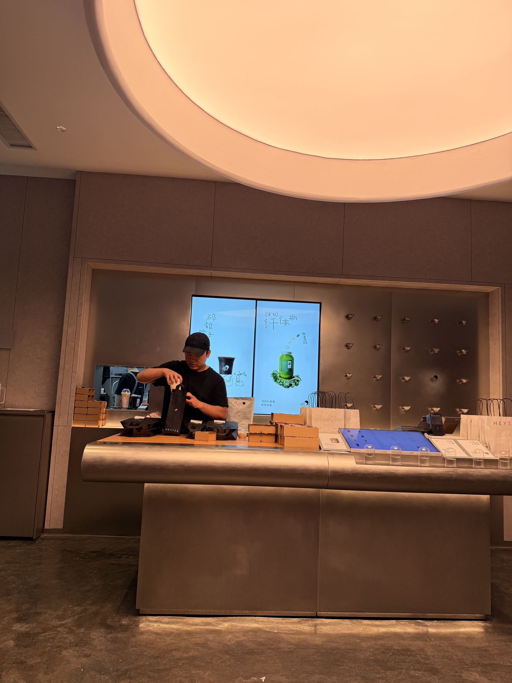 เราเดินเข้าไปร้านชาเล็ก ๆ ชื่อ Hey Tea