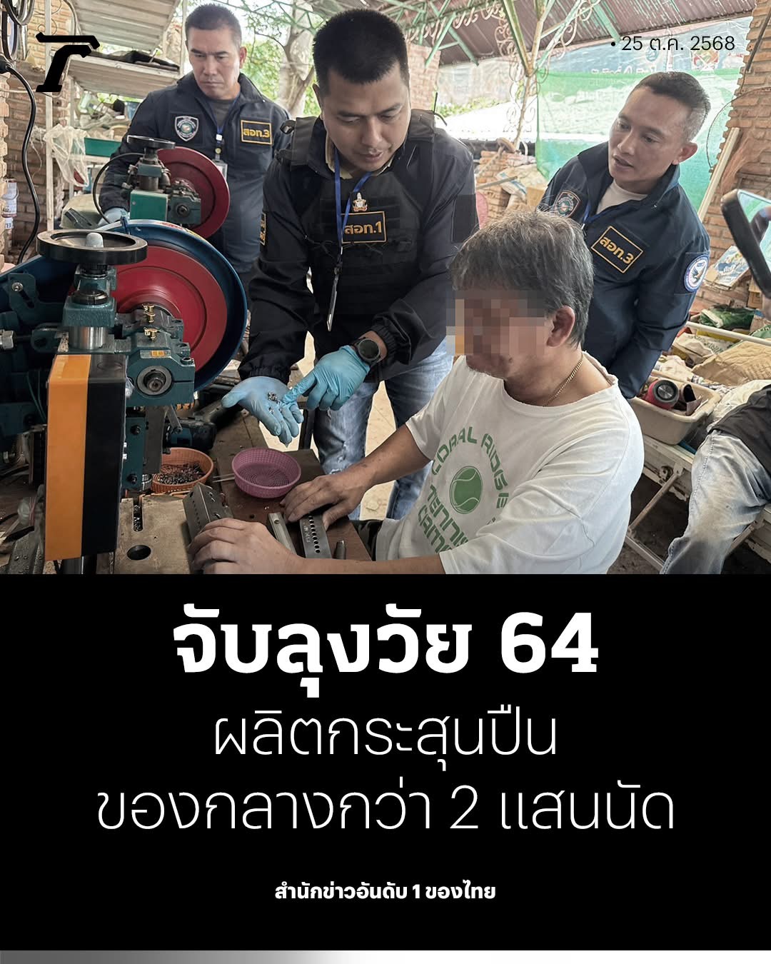 ที่เห็นมีใช้กันเกลื่อนเมือง คงมาจากคนพวกนี้แหละ ตร.บุกทลายแหล่งผลิตกระสุนปืนรายใหญ่ ขายออนไลน์ ยึดของกลางกว่า 2 แสนนัด