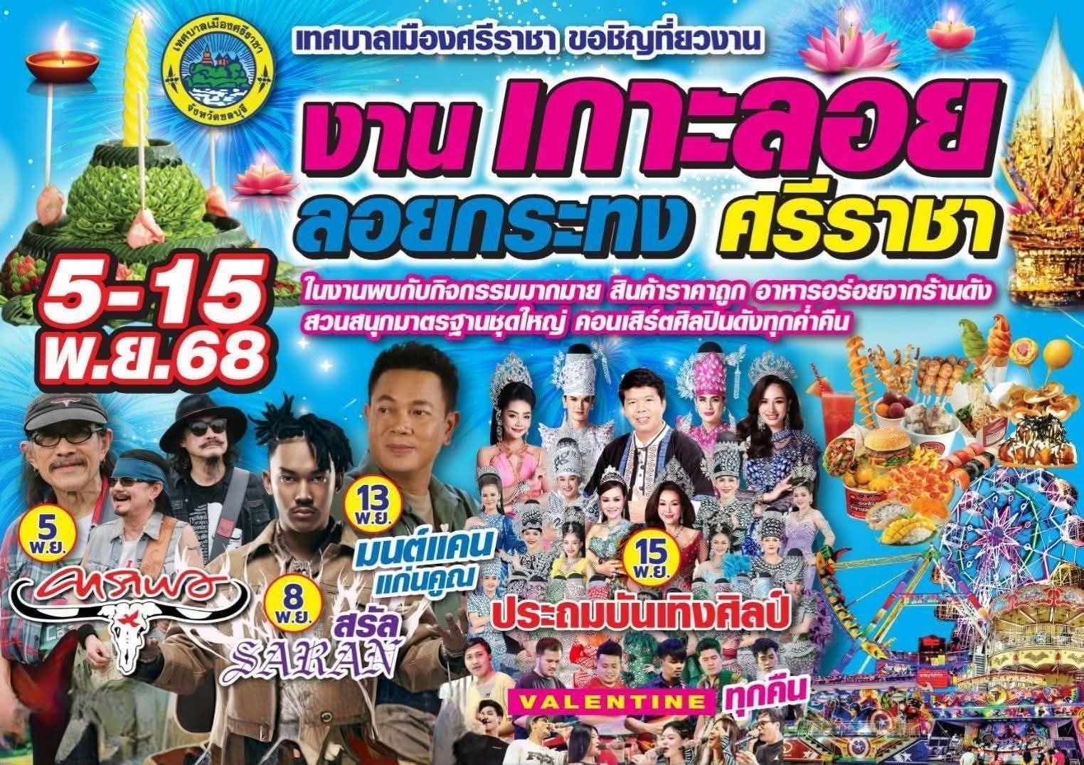 พบกัน ในงาน "ศรีราชา ลอยกระทง เฟสติวัล 2568 ” ณ สวนสุขภาพเทศบาลเมืองศรีราชา