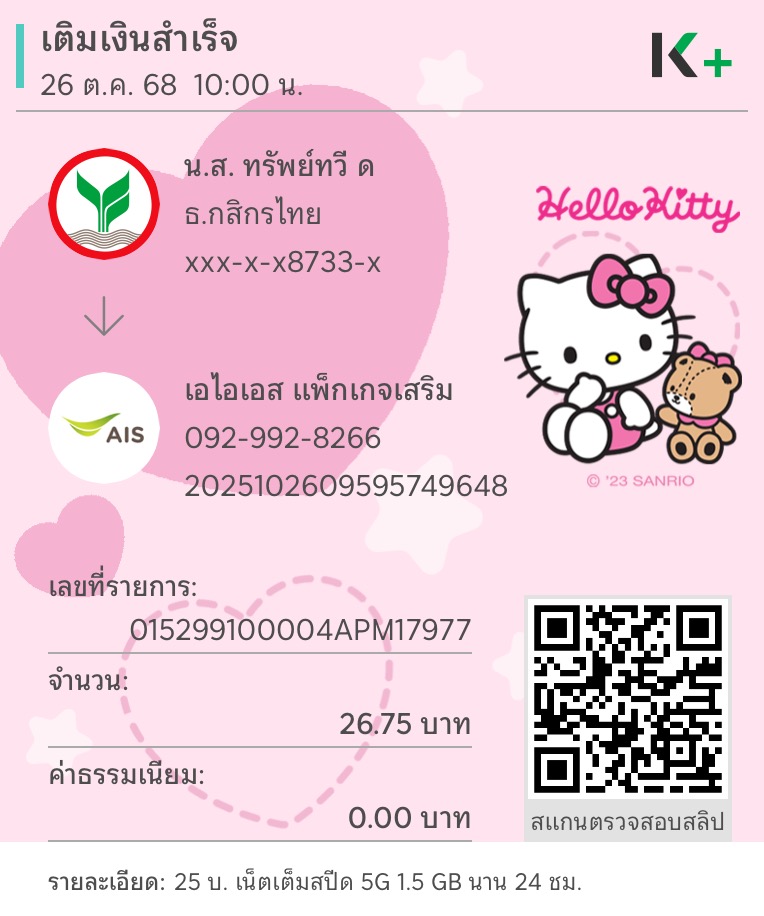 สมัครโปรที่ได้รับจาก sms ไม่ได้ รบกวน Ais สมัครให้หน่อยค่ะ ได้รับข้อความวันที่ 22/10/68 ค่ะ สมาชิกหมายเลข 1606292 แพ็กเสริมสุดคุ้ม เพียง350บ./เดือน เน็ต5G/4Gได้10GB + 45GB(เร็ว15Mbps) + เน็ตไม่จำกัด(