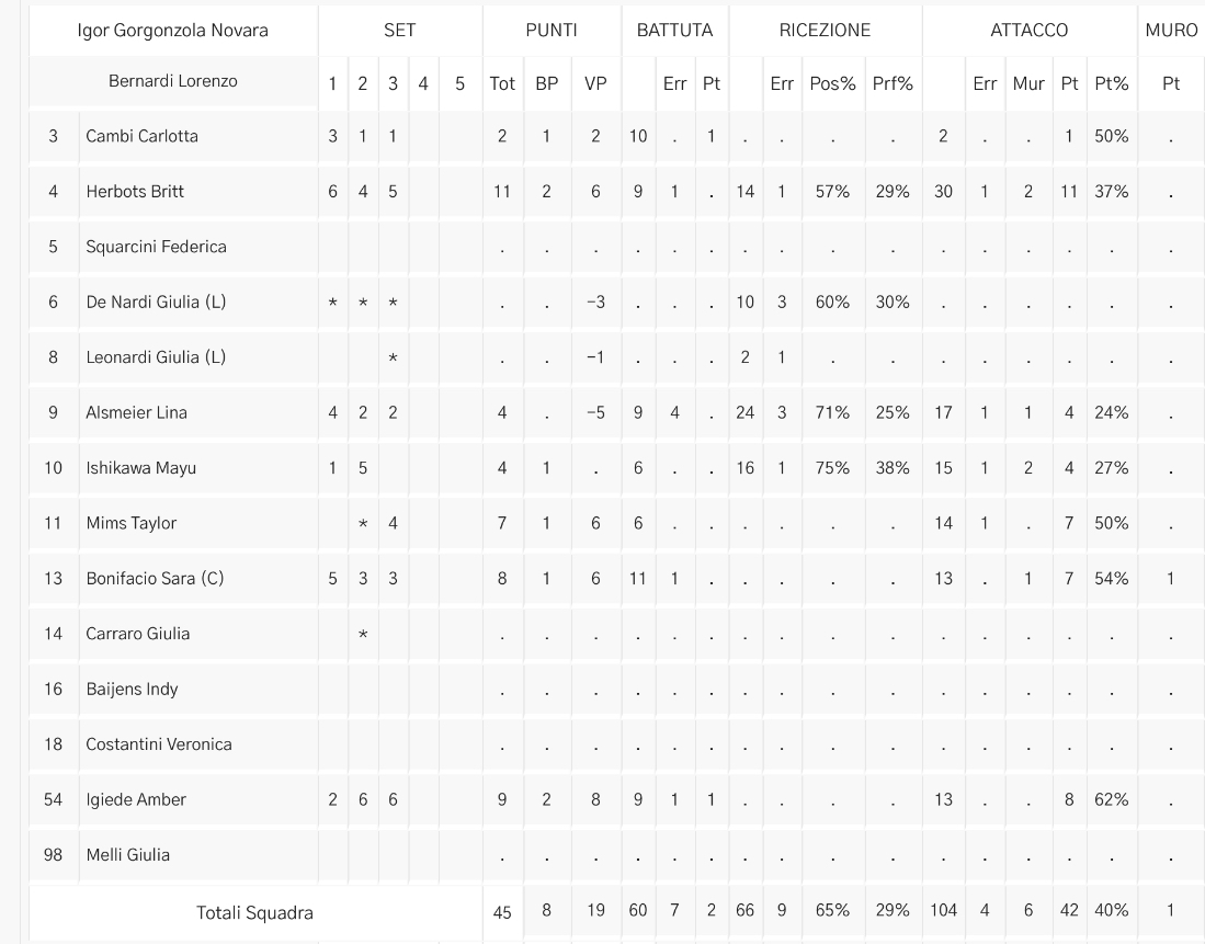สถิติ Novara0-3 Imoco | ฮาคคว้าMVP เฮอร์บอทท็อปสกอร์โนวาร่า