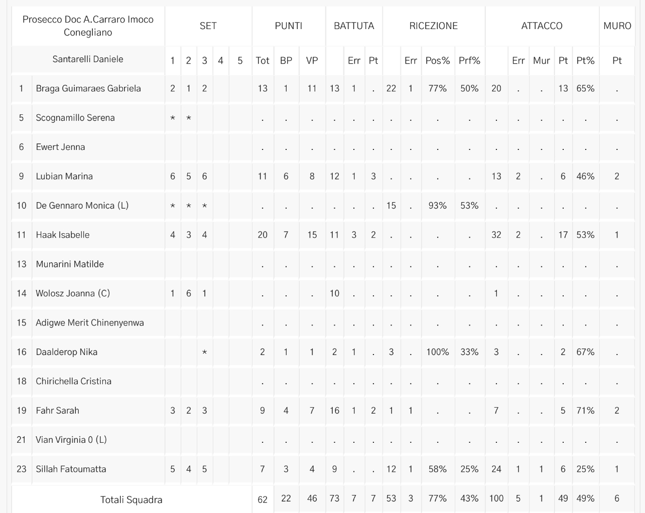 Igor Gorgonzola Novara 0-3 Prosecco Doc Imoco Volley Conegliano (20-25 17-25 21-25) 58-75)