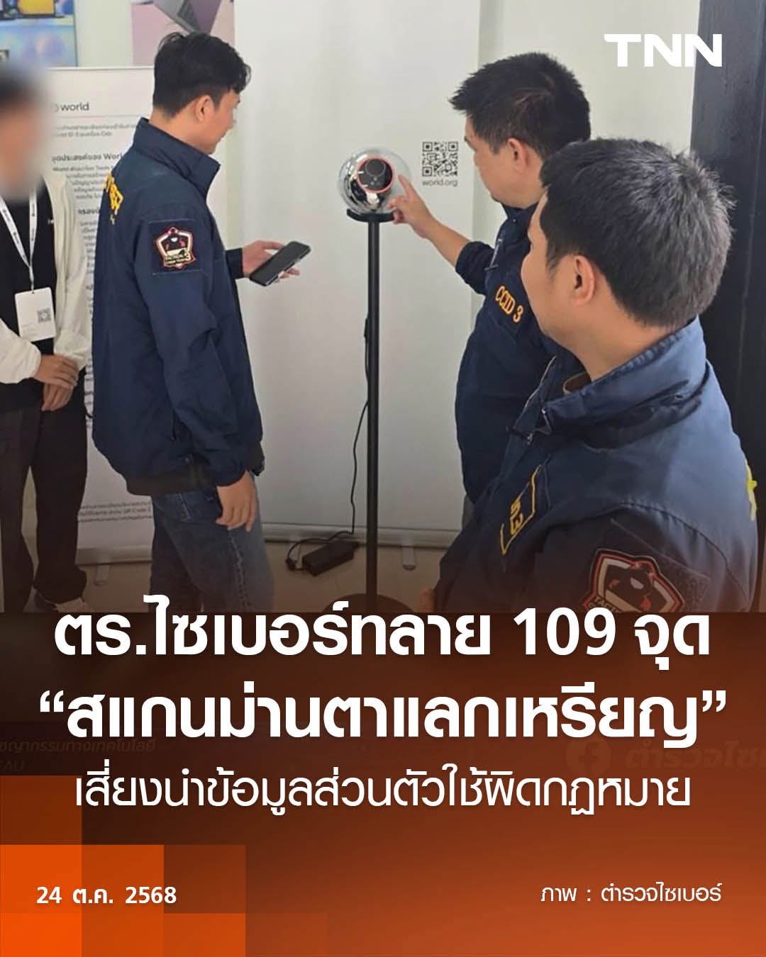 ตร.ไซเบอร์ทลาย 109 จุด "แก๊งสแกนม่านตาแลกเหรียญ”เสี่ยงนำไปใช้ผิดกม.