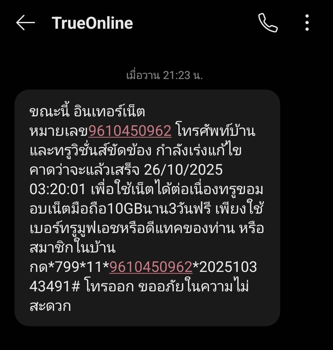 เนตบ้านทรู ล่มมาสามวันแล้วการแก้ไขช้าเกิน