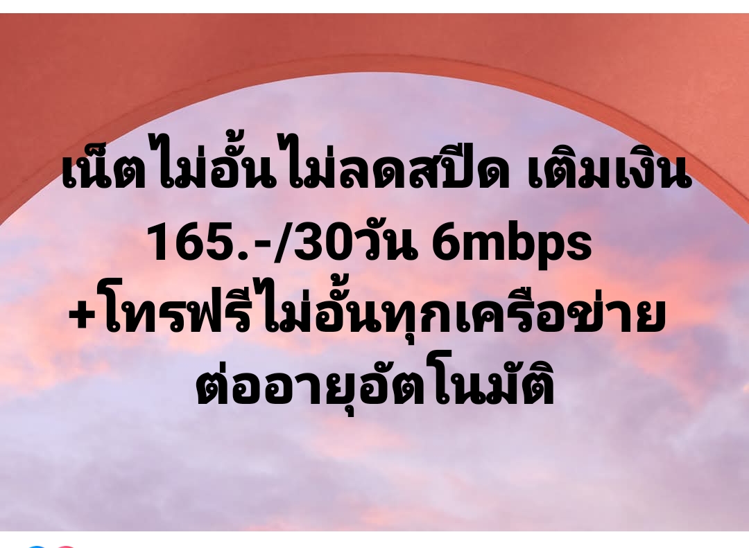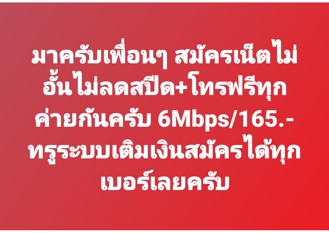 สนใจสมัครโปรนี้ 6mbps+โทรฟรี 30วัน 165 บาท