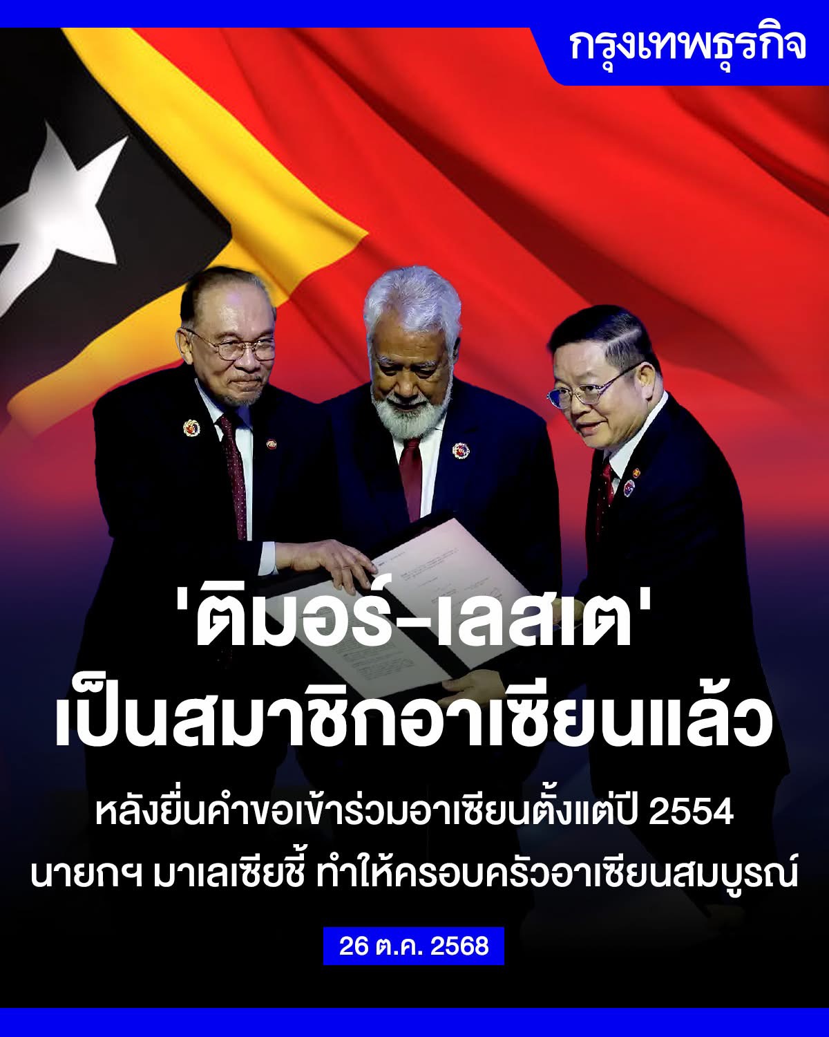 สมาคมประชาชาติแห่งเอเชียตะวันออกเฉียงใต้ (อาเซียน) รับติมอร์-เลสเตเข้าเป็นชาติสมาชิกลำดับที่ 11 อย่างเป็นทางการแล้วในวันนี้ (26 ต.ค.) หลังยื่นคำขอเข้าร่วมอาเซียนตั้งแต่ปี 2554