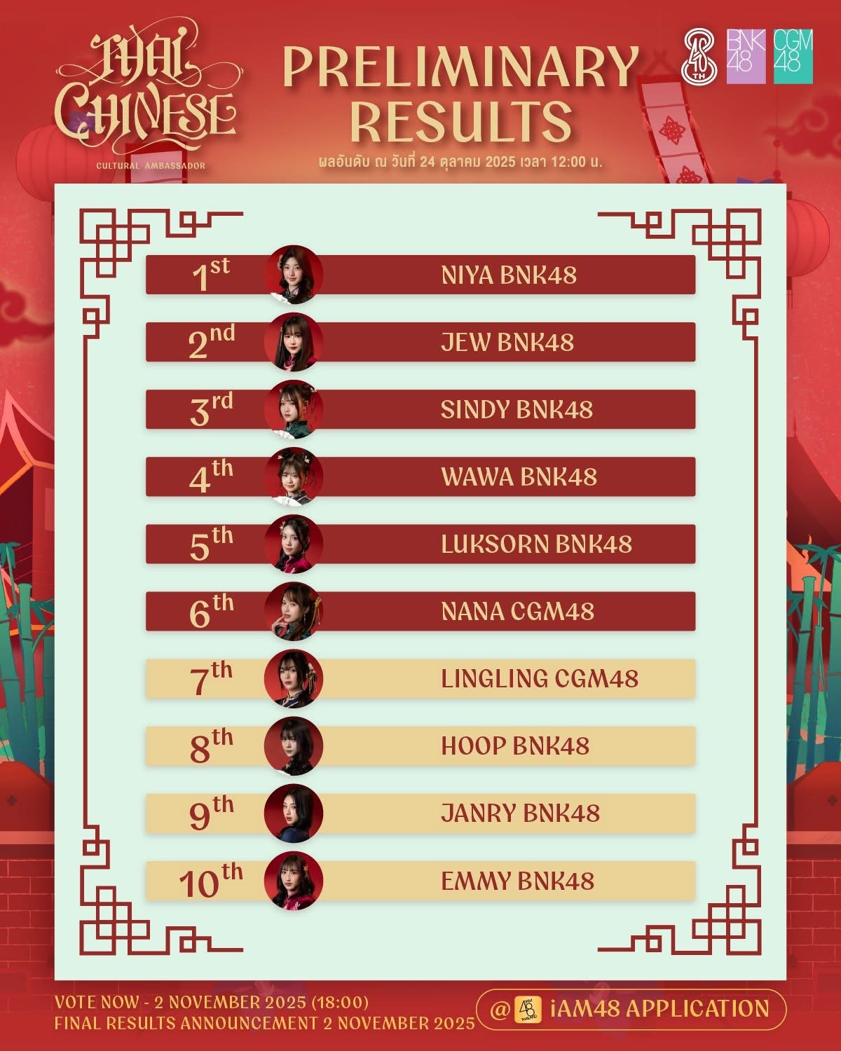 แอบส่อง ยอดพรี Canvas Thai-Chinese Cultural Ambassador ฝั่ง BNK48 รุ่น 5 มาแรงนีญ่านำโด่ง 48 แคนวาสเลขสวย ไม่ธรรมดาอันดับ 2 น้ำมนต์รุ่น 5 กับโยเกิร์ตรุ่น 3 ขนาดโยไม่ได้ลงนะเนี่ย แปลว่าแฟนคลับอยากเก็บร