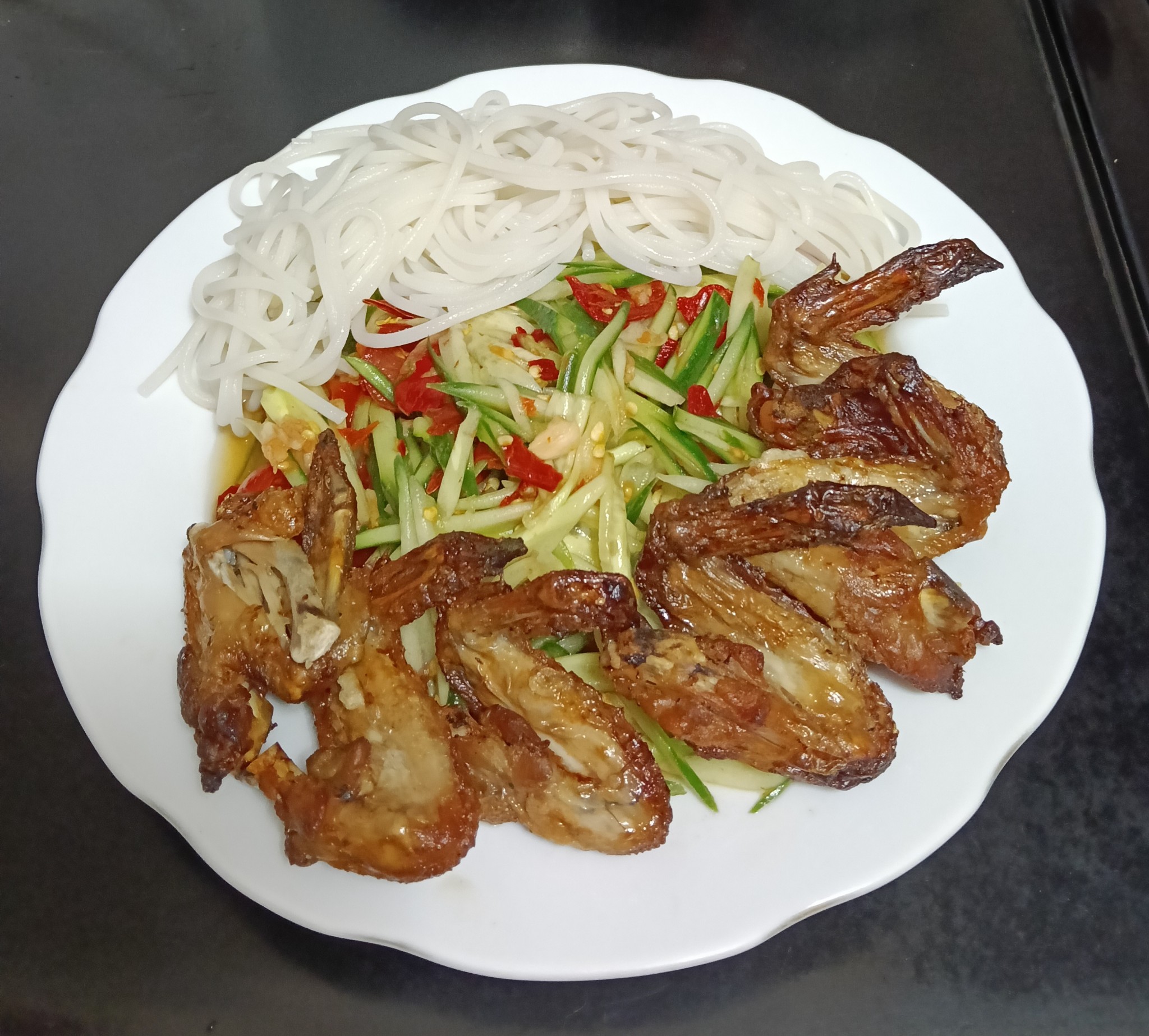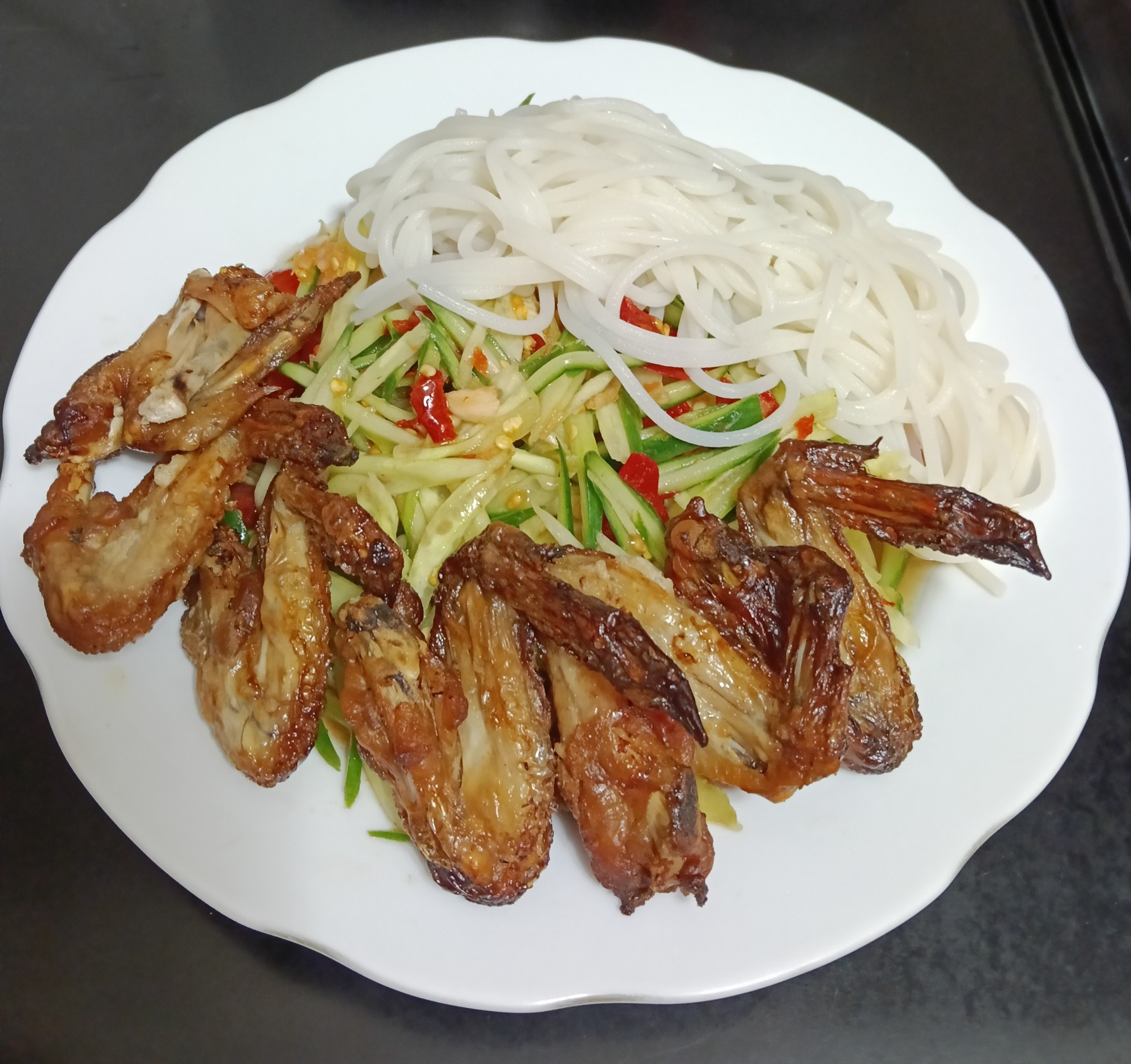 "ตำแตง ปีกไก่ย่าง ขนมจีน"
