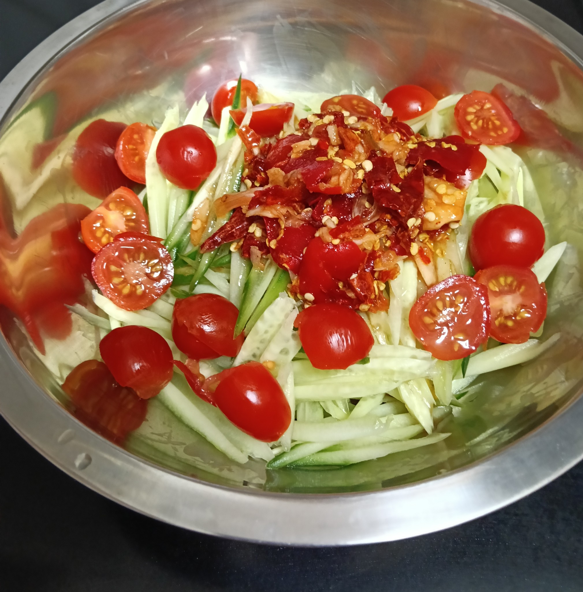 ไม่ได้ออกไปซื้อมะละกอ ก็จะเปลี่ยนจากมะละกอเป็นตำแตงก็อร่อยดีเหมือนกัน 🥒🌶️🌶️🌶️😋