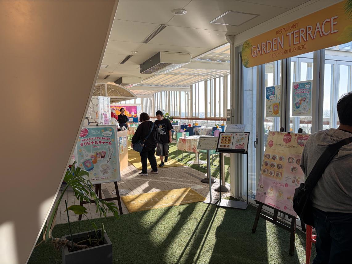 แชร์ประสบการณ์… เส้นทางในความมืดสู่ปราสาทไร้ขอบเขต - อีเวนท์ Demon Slayer ที่สวนสนุก Nijigen No Mori) ไหนๆ ก็มาที่เกาะแล้วช่วงบ่ายก็ยังว่าง เลยหาที่เที่ยวบนเกาะระหว่างรอเวลา ตกลงกันกับแฟนก็ได้ข้อสรุปว่าจะไปกินอาหารพร้อมชมวิวริมทะเลกันที่ Hello Kitty Smile
