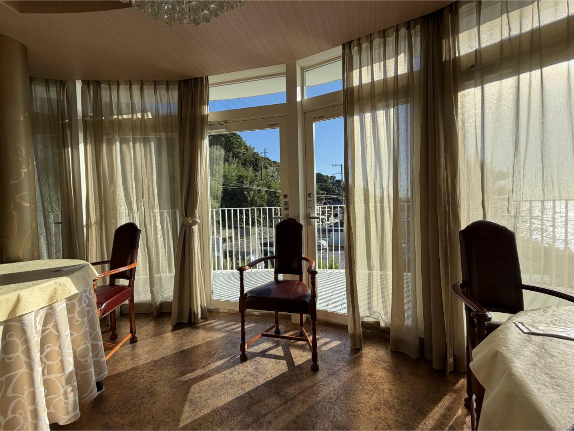 ที่คาเฟ่ นั่งกินอาหารพร้อมวิวทะเล เปิดประตูออกไปที่ระเบียงได้ด้วย