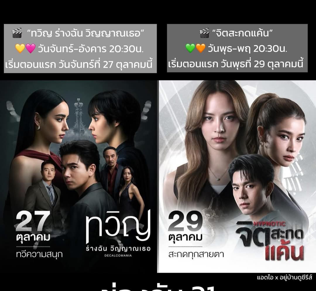 รับชม Series "ทวิญ" และ ละคร "จิตสะกดแค้น" เริ่ม จันทร์ 27 และ พุธ 29 ต.ค.