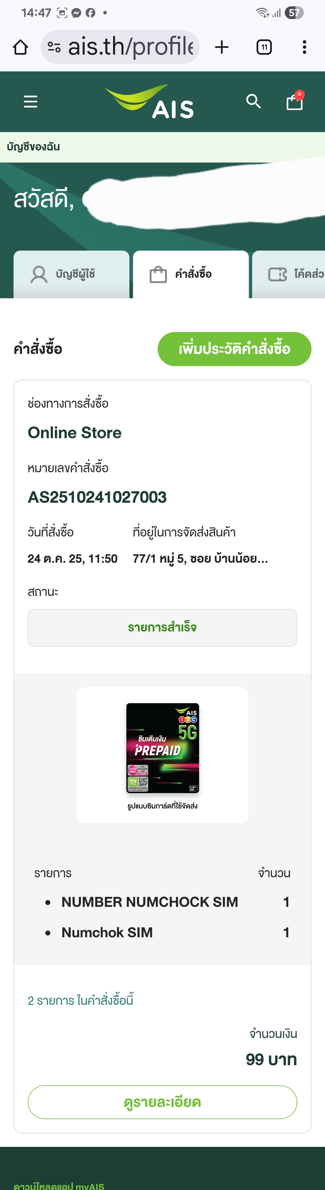 สั่งซิมออนไลน์ Ais แล้วยังไม่รับสินค้าเลยใครเคยพบปัญหานี่บ้างคะ ชำระเงินไปแล้วด้วยต้องทำยังไงค่ะ