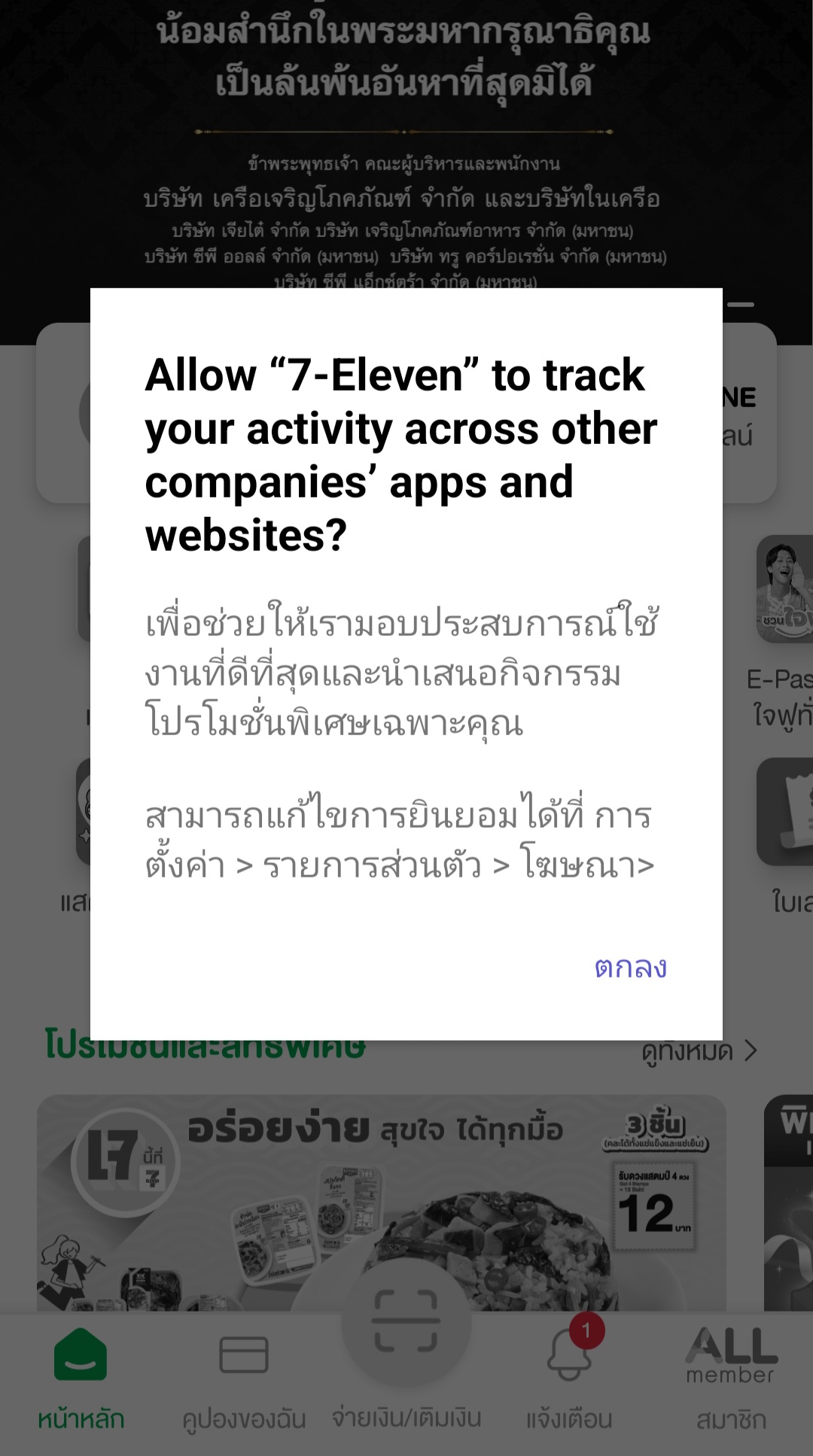 ทำไมถึงไม่มีตัวเลือก ไม่ตกลง ในแอพของ 7-11