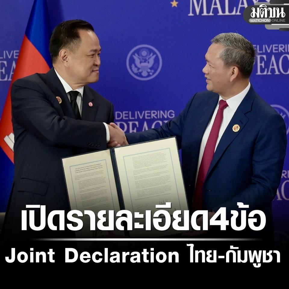 เปิดรายละเอียด 4 ข้อ Joint Declaration ไทย-กัมพูชา ยันจะปล่อยตัวประกัน หลังดำเนินการทั้ง 4 ข้อแล้วเสร็จ